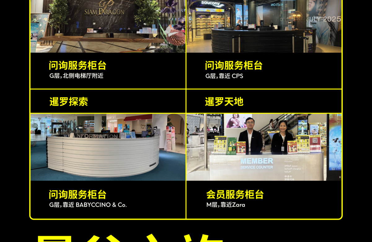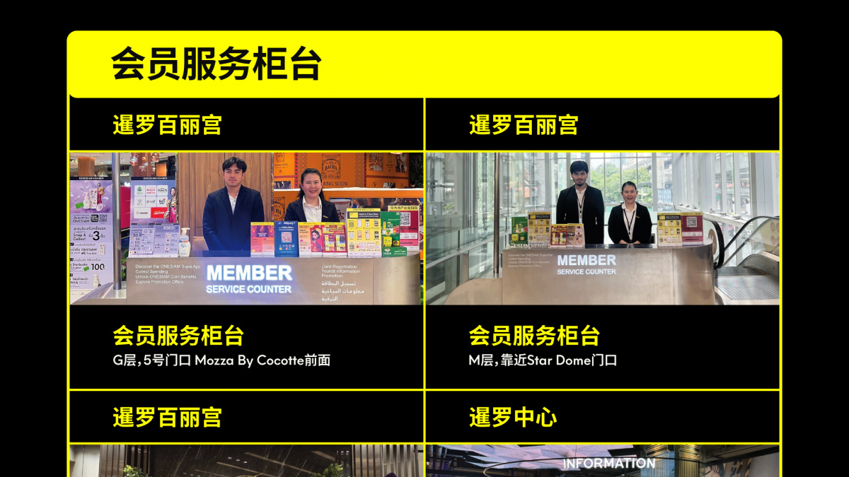 欢迎前往 ONESIAM 全球游客服务中心及服务柜台