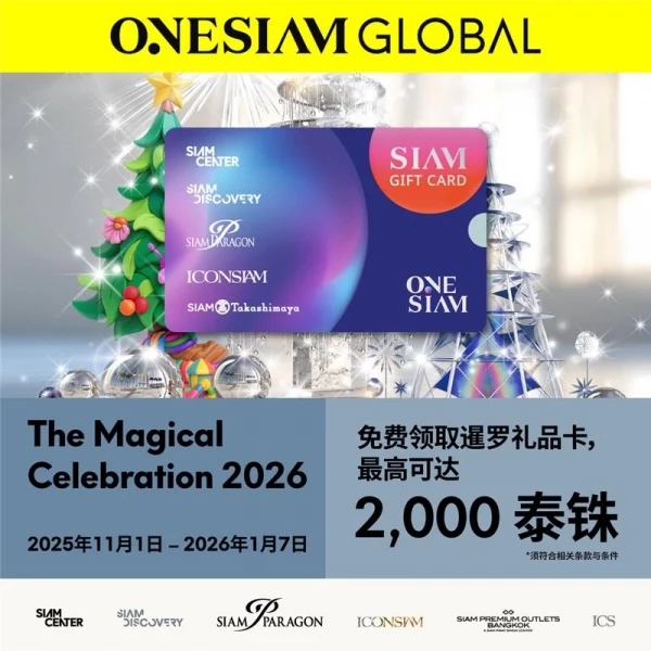 - 单笔消费满 5,000 泰铢 即可获得 250 泰铢 暹罗礼品卡*