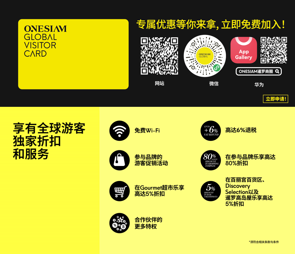 扫码&立即申请,使用 ONESIAM全球游客卡,开启非凡体验。