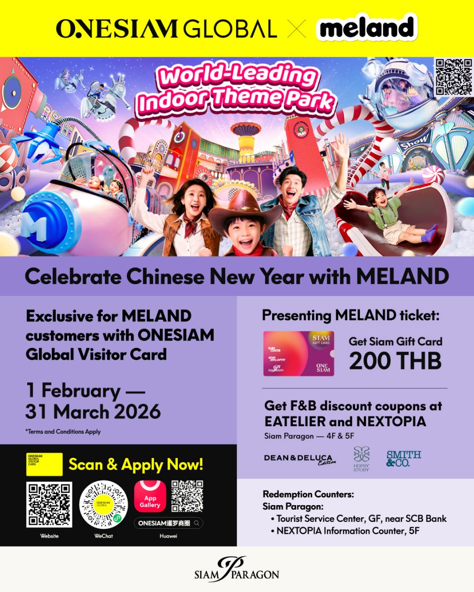 - To receive the THB 200 SIAM GIFT CARD, customers must present MELAND booking confirmation at the designated redemption counter.