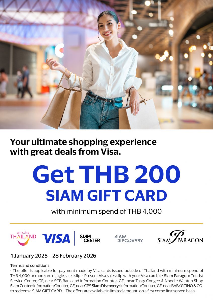 - Get 200 THB Siam Gift Card with minimum spending of 7,000 THB
