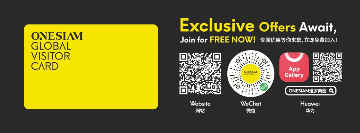 Don’t miss out on the ONESIAM Global Visitor Card — enjoy exclusive privileges and discounts of up to 80% at Bangkok’s six premier shopping destinations: