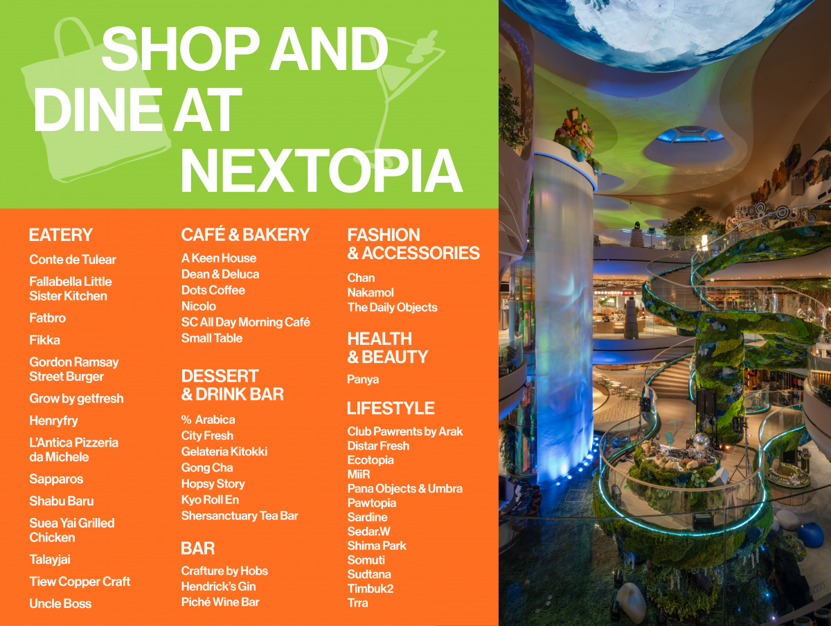 Retail and dining at NEXTOPIA are equally eco-forward. Anchored by ECOTOPIA, an eco-specialty store supporting local communities, the zone brings together carefully curated brands offering greener lifestyle choices across fashion, beauty, wellness, hygiene, kids, and even pets.