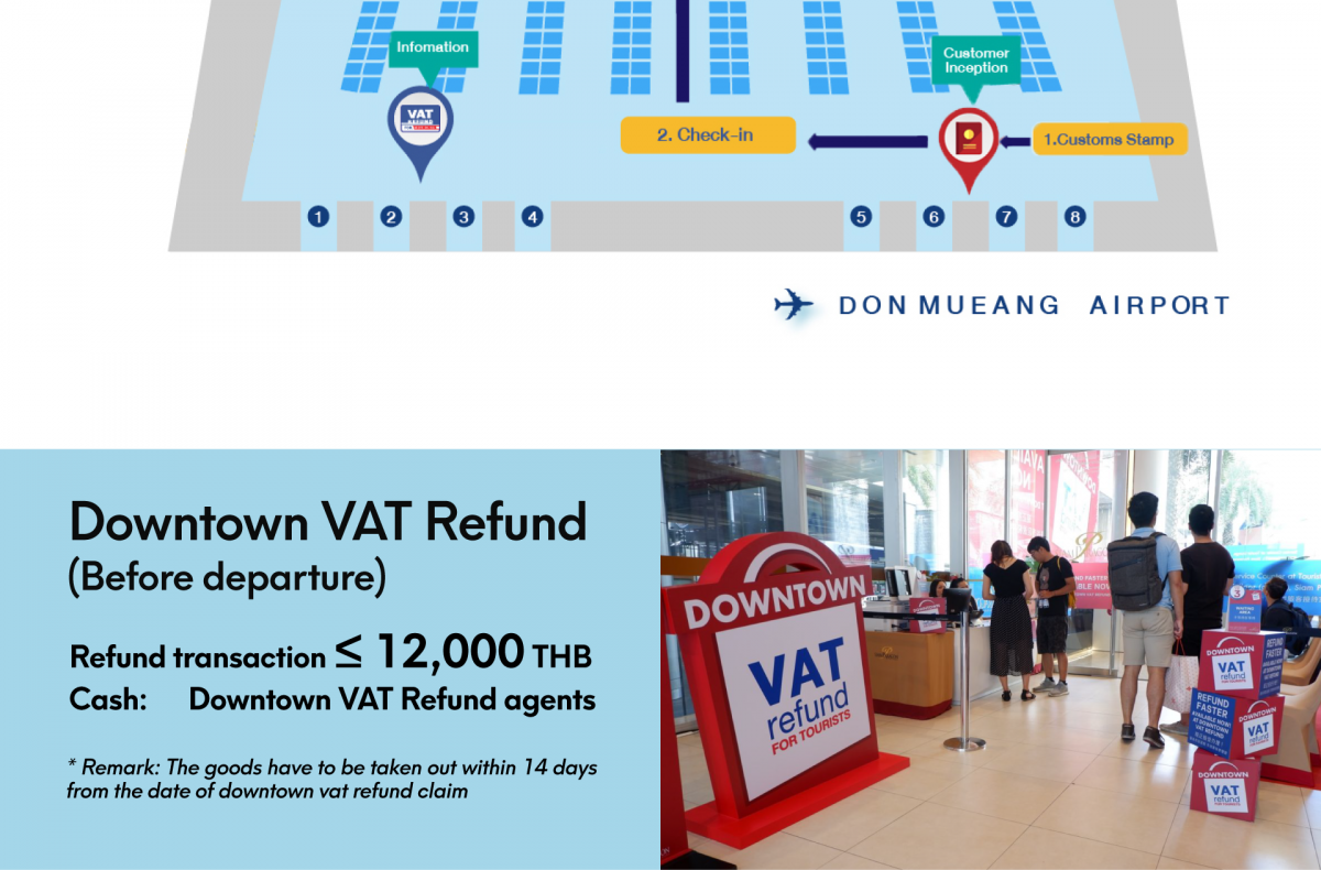“VAT REFUND FOR TOURISTS” sign. - Spend at least 2,000 THB